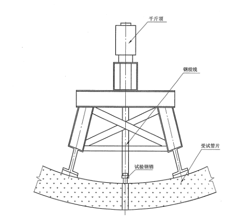 將拉力螺桿旋入管片灌漿螺栓套中,再將管片置于拉力架里,并使螺桿與拉力架用螺絲連接后,整體放置在支承架上,支承架承托著管片兩側(cè),當(dāng)千斤頂軸心升起時(shí),拉力架帶動(dòng)螺桿向下拉,拉力螺桿通過螺栓套內(nèi)螺牙傳遞力帶動(dòng)螺栓套向外拉拔,以測(cè)試灌漿孔螺栓套的zui大抗拔力。